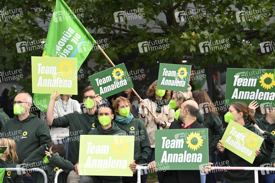 Bündnis 90/Die Grünen Anhänger beim 'Triell - Dreikampf ums Kanzleramt' von ARD und ZDF mit den Kanzlerkandidaten im Studio Berlin-Adlershof. Berlin, 12.09.2021