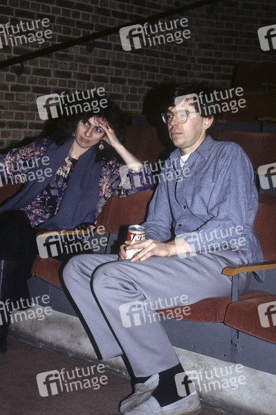Helen Liebmann und Simon Jeffes vom Penguin Cafe Orchestra beim Soundcheck im Mermaid Theatre. London, 16.12.1984