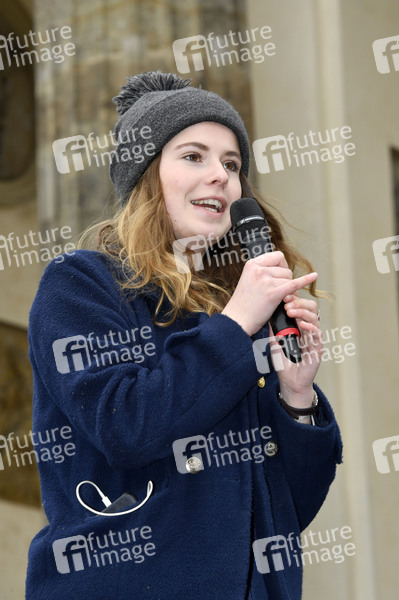 Luisa Neubauer bei der 'Fridays for Future' Schülerdemonstration gegen die Klimapolitik vor dem Brandenburger Tor. Berlin, 29.03.2019