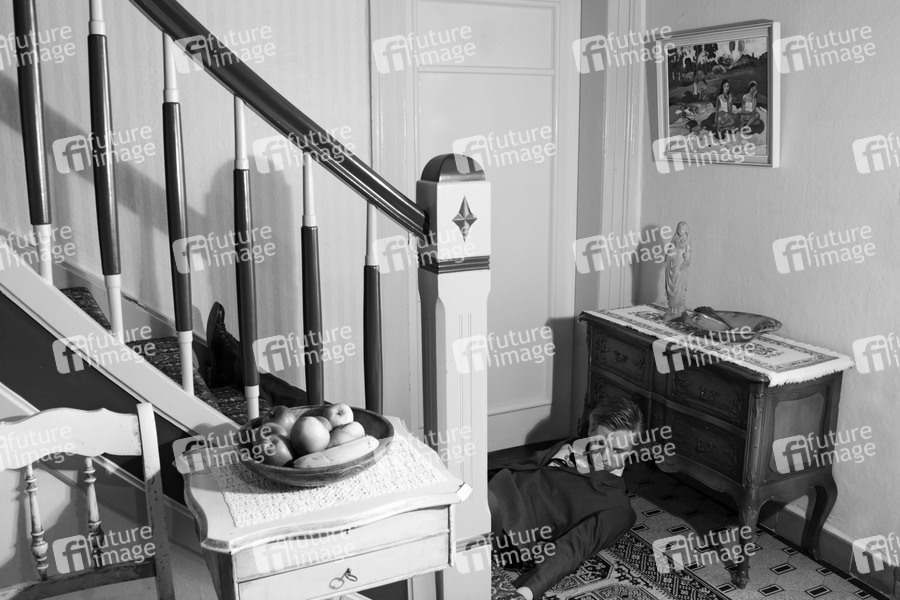 Kunst, Art, Unterhaltung, Entertainment, Kultur, Film, TV, Mord, Leiche, Fotokunstprojekt, Gewalt, tot, Tod, Gewaltverbrechen, Verbrechen, Treppe, Sturz, Flur
