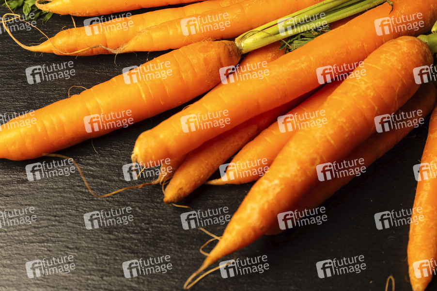 Essen, Nahrung, Speise, Ernährung, Gemüse, Karotte, Möhre, Mohrrübe, Gelbrübe, Gelbe Rübe, Rüebli, Riebli, Wurzel, Doldenblütler, Apiaceae, Gemüsepflanze, Daucus carota, Karottengrün, Karottenkraut, Möhrengrün, Symbolbild, Themembild