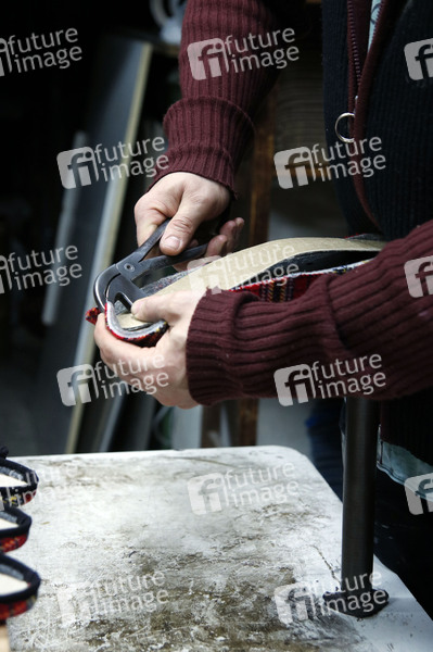 Altes Handwerk, Handwerk, Handwerkskunst, Familienbetrieb, Familiengeschäft, Handarbeit, Ausbildung, Azubi, Lehrling, Lehre, Lehrjahre, Gesellenprüfung, Geselle, Meisterprüfung, Meister, Handwerksmeister, Meisterbrief, Auftrag, Aufträge, Pantoffel, Pantoffeln, Latschen, gemütlich, Feierabend, krisensicher, das deutsche Handwerk, Job, Jobs, Handwerkskammer, Lieferzeit, Onlinehandel, Mittelstand, Wirtschaft, Konjunktur, Pantoffelmacher, Orthopädieschuhmacher, Pantoffel-Produzent, Symbolbild, Symbolfoto