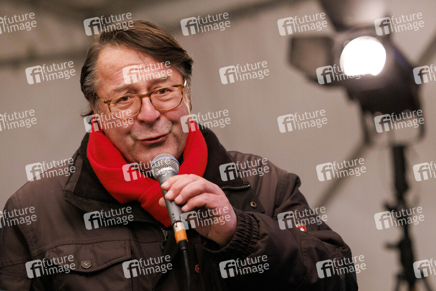 Hans Mörtter bei der Solidaritätsaktion mit Obdachlosen am Kölner Hauptbahnhof. Die Vereine 'Helping Hands' und die Sozialistische Selbsthilfe Mülheim (SSM) haben unterstützt von der Initiative 'Arsch Huh' am Wochenende dazu eingeladen, in einer Solidaritätsaktion drei Nächte am Hauptbahnhof zu übernachten. Köln, 03.12.2021