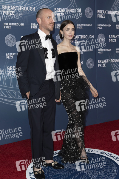 Charlie McDowell mit Ehefrau Lily Collins bei der 11. Verleihung des Breakthrough Prize für herausragende wissenschaftliche Arbeiten im Barker Hanger. Santa Monica, 05.04.2025