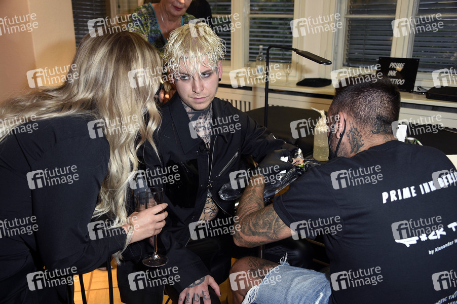 Alexander Höller mit Freundin Svenja Reichert bei der Eröffnung der Alexander Höller Ausstellung 'F*CK THEM' in der Galerie Schmalfuss. Berlin, 19.08.2021