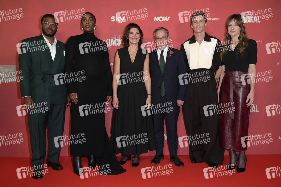 Zackary Momoh, Lashana Linch, Anne Llewellyn, Edward Llewellyn, Eddie Redmayne und Hannah Banshawe bei der Premiere der Sky Serie 'The Day of the Jackal' in der Villa Wolkonsky. Rom, 07.11.2024
