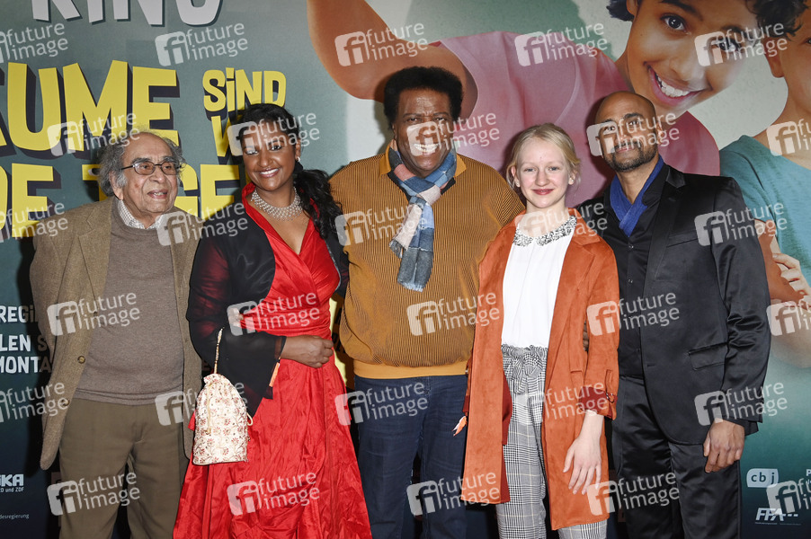 Irshad Panjatan, Sushila Sara Mai, Roberto Blanco, Annlis Krischke und Murali Perumal bei der Premiere des Kinofilms 'Träume sind wie wilde Tiger' im CinemaxX Halle. Halle (Saale), 02.02.2022