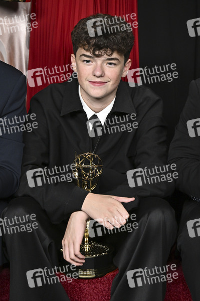 Owen Cooper mit dem Emmy für den besten Nebendarsteller in der Mini-Serie 'Adolescence' beim Preisträger-Photocall der 77. Primetime Emmy Awards 2025 im Peacock Theater. Los Angeles, 14.09.2025