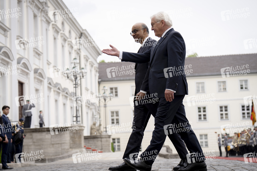 Tharman Shanmugaratnam und Frank-Walter Steinmeier beim Empfang des Präsidenten von Singapur mit militärischen Ehren im Schloss Bellevue. Berlin, 04.06.2025