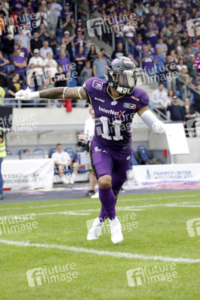 Normen Schumm (Frankfurt Galaxy WR) beim American Football-Spiel Frankfurt Galaxy gegen Hamburg Sea Devils in der PSD Bank Arena. Frankfurt am Main, 30.06.2024