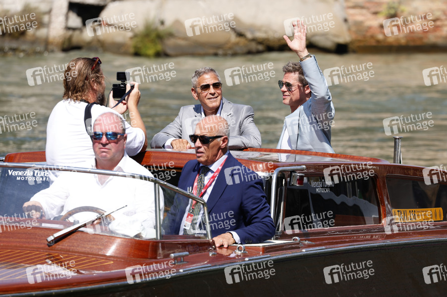 George Clooney und Brad Pitt bei der Ankunft am Pier des Palazzo del Casino auf der Biennale di Venezia 2024 / 81. Internationale Filmfestspiele von Venedig. Venedig, 01.09.2024