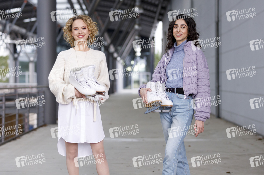 Greta Voss und Leyla Öztürk in 'Alles was zählt', Prominenz, Celebrity, Celebrities, Dreharbeiten, Filmset, Location, Settermin, Unterhaltung, Entertainment, Photocall, Fotocall, Kultur, TV, Fernsehen, TV-Serie, Fernsehserie, AWZ, Seifenoper, Daily Soap, Schauspielerinnen