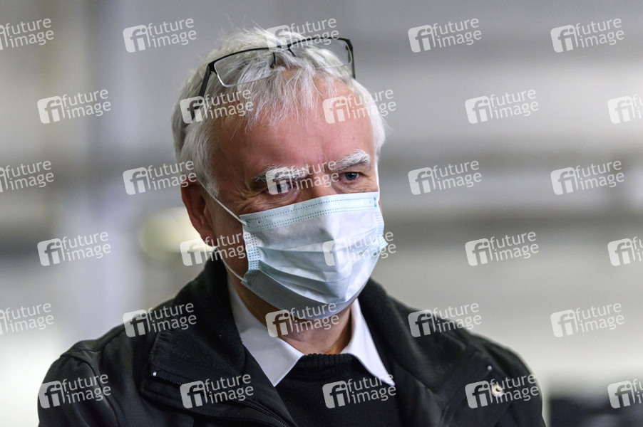 Der Berliner Erzbischof Heiner Koch unterstützt die ehrenamtlichen Helfer der Berliner Tafel , die Lebensmittel in Tüten packen. Wegen der COVID-19-Pandemie mussten die 42 LAIB und SEELE-Ausgabestellen schließen. Damit bedürftige Menschen weiterhin gespendete Lebensmittel erhalten können, beliefert die Berliner Tafel die Bedürftigen jetzt zu Hause. Berlin, 30.03.2020