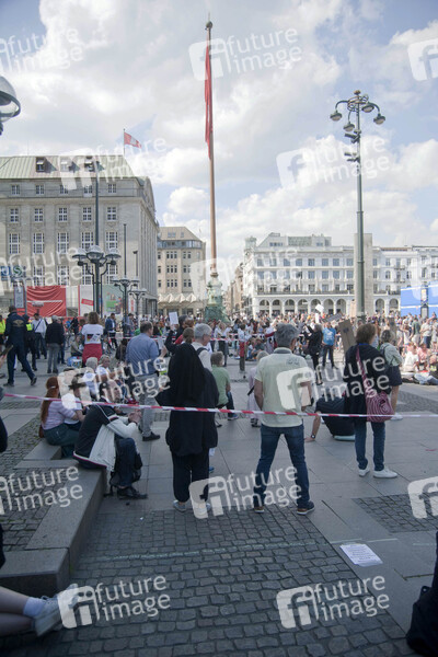 Demonstranten auf der Demo gegen die Einschränkung der Grundrechte wegen der Covid-19 Pandemie vor dem Hamburger Rathaus. Hamburg, 09.05.2020