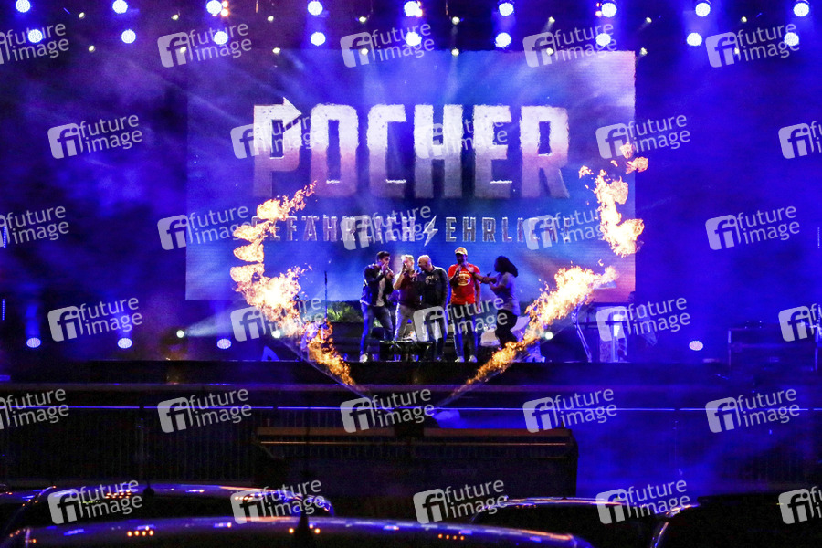 Alexander Klaws, Oliver Pocher, Dittmar Bachmann, Matze Knop und Mola Adebisi mit dem Programm 'Gefährlich ehrlich' live bei der Autokultur-Konzert-Reihe auf dem Schützenplatz. Hannover, 12.07.2020