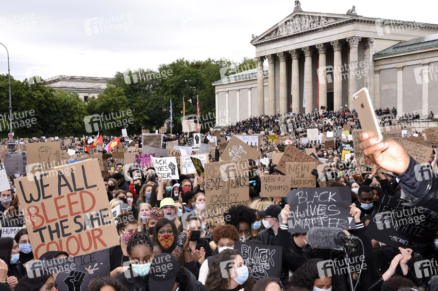 Demonstranten bei der 'Silent Protest - Sag Nein zu Rassismus' auf dem Königsplatz. München, 06.06.2020