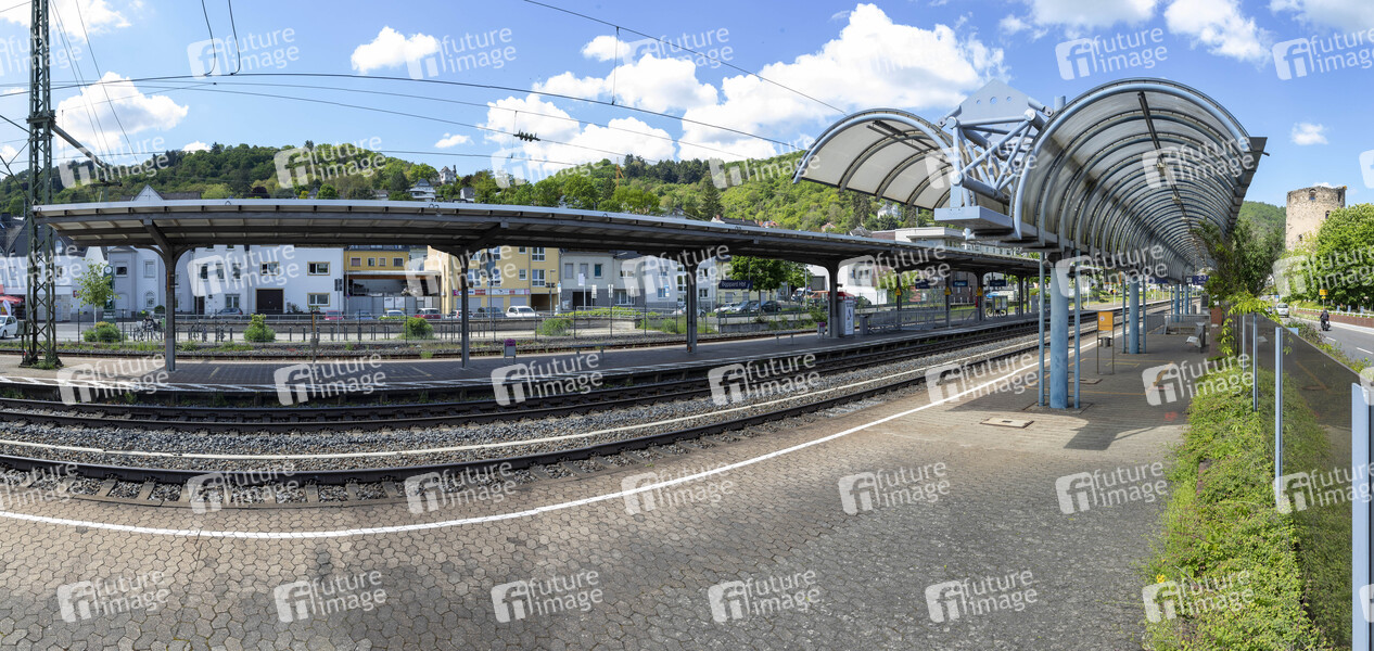 Boppard Hauptbahnhof liegt an der linksrheinischen Fernverkehrstrasse in Rheinland-Pfalz und ist ein Trennungsbahnhof für Regionalexpress- und Regionalbahnzüge. Boppard, 31.05.2021