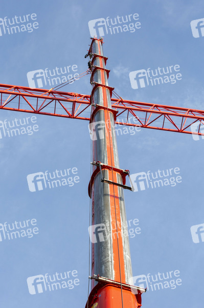 Kran-Demontage, Krandemontage, Kranabbau, Montageteam, Sorgfalt, Konterballast, Traglast, Schwertransport, Autokran, Fahrzeugkran, Kranwagen, Teleskopausleger, dieselelektrische dieselhydraulisch, Reichweite, Schwerpunkt, Gleichgewicht, Nivellierung, Sprechfunknavigation, Fahrzeugkranführer, zulässiges Gesamtgewicht, schwer, Kranbetreiber, Hebemaschine, Obendreherkran, Krantechnik, Kranvermietung, Kranzubehör, Baukranhandel, Krananstrich, Kranfarbe, Baustelle, Hochbau, Hochbaukrane, Tiefbau, Fachwerkträger, Drehkranz, Vorderer Auslager, hinterer Ausleger, Katzausleger, Nadelausleger, Turmkrankonstruktion, Wolffkran, Baumaschinen, Baumaschinenhersteller, Kranhersteller, Turmspitze, Konterballast, Ballastgewicht, Gegenausleger, Traglast, Widerlager, Aufstellfläche, Bodenplatte, Betongewichte, Stahlrohrkonstruktion, Stahlkonstruktion, Lastmoment, Krankomponenten, Fundamentanker, Turmabspannung, Innenkletterleiter, Kranführer, Kranfahrer, Krankanzel, Steuerkanzel, Symbolbild, Symbolfoto