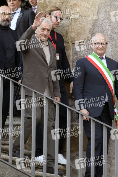 Robert de Niro und Roberto Gualtieri nach der Verleihung des Lupa Capitolina auf dem Kapitolsplatz. Rom, 06.11.2025