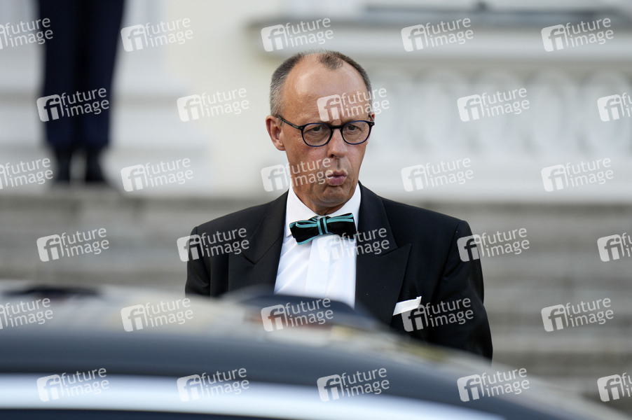 Friedrich Merz bei der Ankunft zum Staatsbankett zu Ehren des Staatspräsidenten der Französischen Republik im Schloss Bellevue. Berlin, 26.05.2024