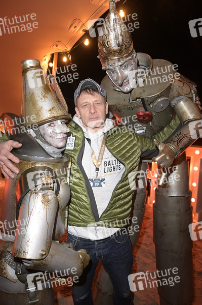 Claudia Jungesbluth, Hendrik Duryn und Enrico Lein beim offiziellen Opening der Baltic Lights 2024 mit Fackellauf und Lagerfeuer an der Alex Strandbar. Heringsdorf, 01.03.2024