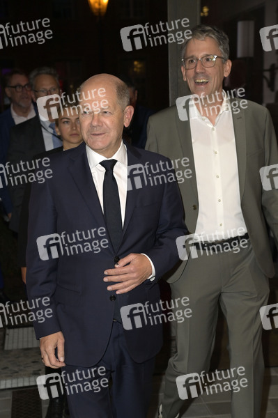 Olaf Scholz und Claus Grewenig beim Vaunet Jubiläumsevent '40 Jahre Private Medien' im Telegraphenamt. Berlin, 10.10.2024