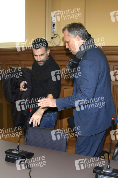 Marc Terenzi mit seinem Anwalt Andreas Hohnel bei der Gerichtsverhandlung wegen des Vorwurfs der sexuellen Belästigung einer 15-Jährigen gegen Marc Terenzi vor dem Amtsgericht Borna. Borna, 14.03.2024
