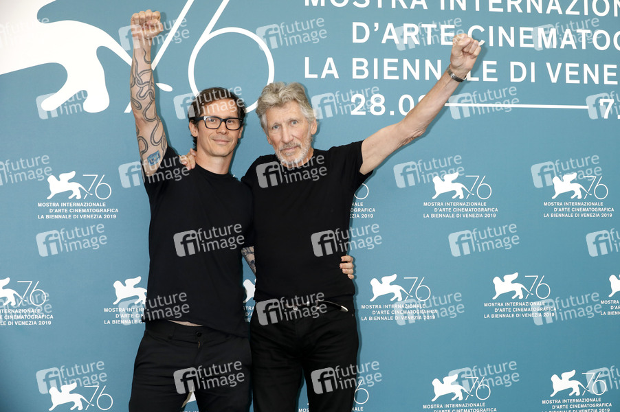 Sean Evans und Roger Waters beim Photocall zu 'Roger Waters Us + Them' auf der Biennale di Venezia 2019 / 76. Internationale Filmfestspiele von Venedig im Palazzo del Casino. Venedig, 06.09.2019
