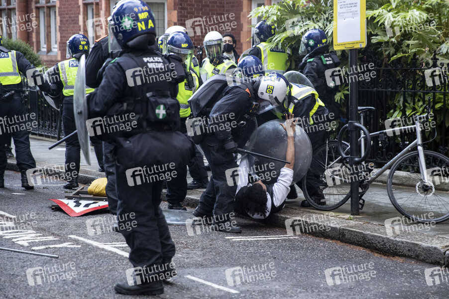 Demonstration gegen staatliche Gewalt und Solidarität mit Palästina. Spannungen in Jerusalem haben zu grenzüberschreitenden Luftangriffen zwischen Israel und Militanten in Gaza geführt, bei denen bisher mindestens 119 Palästinenser und 8 Israelis getötet wurden. London, 15.05.2021