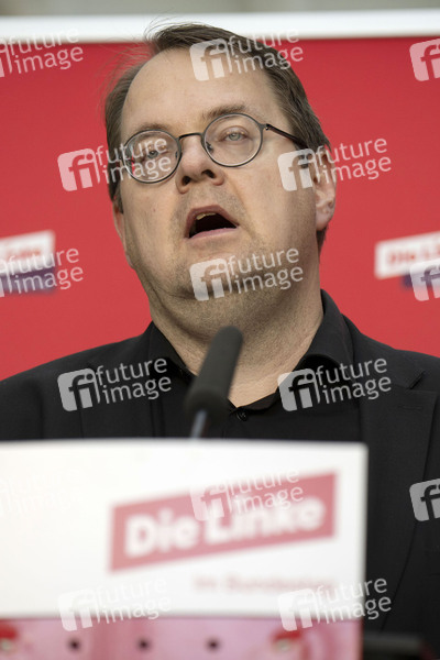 Sören Pellmann bei einem Pressestatement der Partei Die Linke im Reichstagsgebäude. Berlin, 10.03.2025
