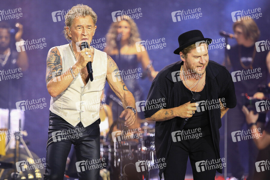 Peter Maffay und Johannes Oerding live bei einem Konzert der 'We Love Rock 'n' Roll'- Farewell Tour in der Red Bull Arena. Leipzig, 20.07.2024