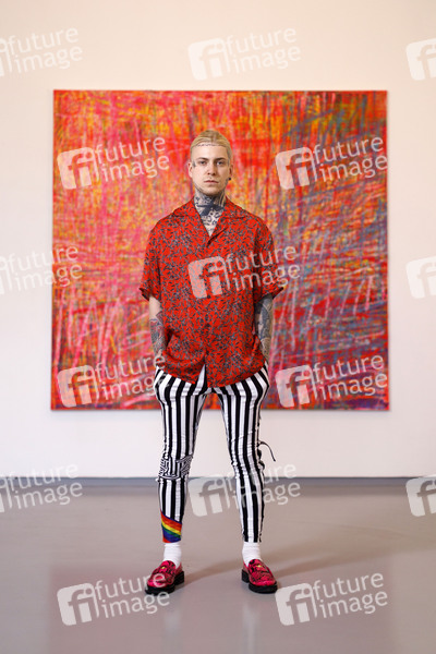 Alexander Höller bei seiner Ausstellung 'Höller - Sturm 2' vor dem Gemälde 'Wald 23' in der Galerie Martina Kaiser. Köln, 21.08.2020