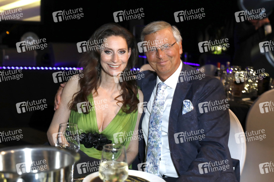 Pia Douwes und Wolfgang Bosbach bei der Verleihung der Goldenen Sonne 2019 während der Sonnenklar.TV Gala im Wunderland Kalkar. Kalkar, 27.04.2019
