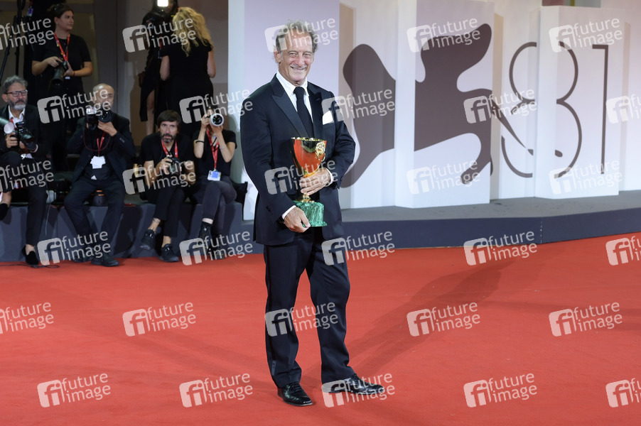 Vincent Lindon mit dem Coppa Volpi für den besten Darsteller in 'Jouer avec le feu' bei der Preisverleihung der Biennale di Venezia 2024 / 81. Internationale Filmfestspiele von Venedig im Palazzo del Cinema. Venedig, 07.09.2024