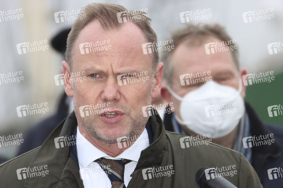 Andy Grote bei der Einweihung der Jan-Fedder-Promenade. Die bislang nicht offiziell benannte Uferpromenade am Hafen zwischen Landungsbrücken und Baumwall trägt jetzt den Namen des Hamburger Volksschauspielers und Ehrenkommissars der Polizei Hamburg. Hamburg, 14.01.2022