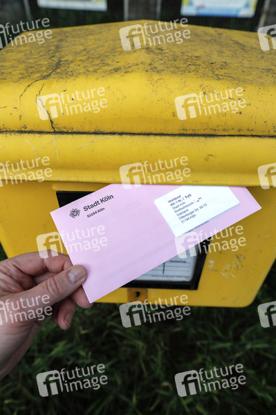 Europawahl, Europäische Union, EU, Europäisches Parlament, Europaparlament, An Eides statt, Antwort, Antwortumschlag, Ausfüllen, Auszählung, Berechtigung, Stimmzettelumschlag, Briefnetz, Briefsendung, Briefsendungen, Briefwahl, Briefwähler, Briefwählerinnen, Briefwahlstimmen, Briefwahlunterlagen, Briefwahlzentrum, Europawahlen, Deutsche Post, Eigenhändige Unterschrift, Fraktion, Fraktionen, Europäische Wahlordnung, Europawahl, Manipulationen, Meldeadresse, Meldeanschrift, Mengen an Wahlbriefen, Parteien, portofrei, Roter Wahlbriefumschlag, Stimmabgabe, Stimmen, Stimmzettel, Stimmzettelumschlag, Transport, Umschlag, Unfrankiert, Unterlagen, Unterschrift, Wahl, Wahlbenachrichtigung, Wahlbrief, Wähler, Wahlergebnis, Wahlkampf, Wahlkampf, Wahlschein, Postbriefkasten, Briefkasten, Symbolbild, Themenbild