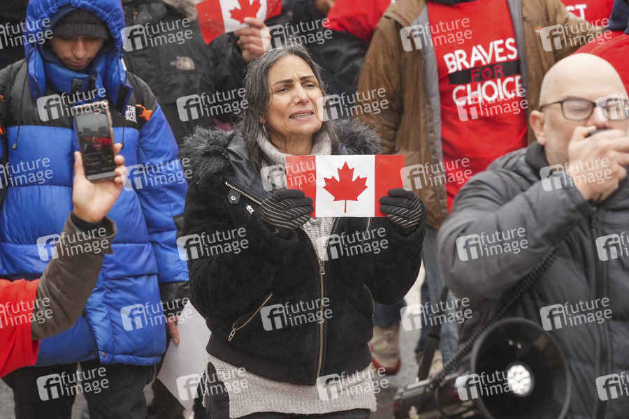 Über 300 Stadtarbeiter und andere protestieren mit einem Marsch über die Brooklyn Bridge, gegen die Ankündigung der Stadt, dass kommunale Angestellte ohne Covid-19-Impfung bis zum Ende der Woche entlassen würden. New York, 07.02.2022