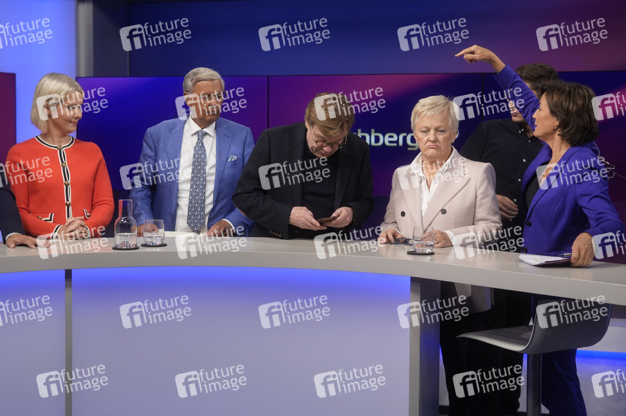 Nicole Diekmann, Wolfgang Bosbach, Bela Rethy, Renate Künast und Sandra Maischberger in der ARD-Talkshow 'maischberger' im Studio Berlin Adlershof. Berlin, 01.10.2024