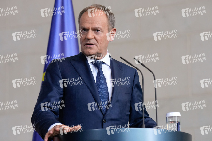 Donald Tusk beim Pressestatement nach einem gemeinsamen Gespräch des Weimarer Dreiecks im Bundeskanzleramt. Berlin, 15.03.2024