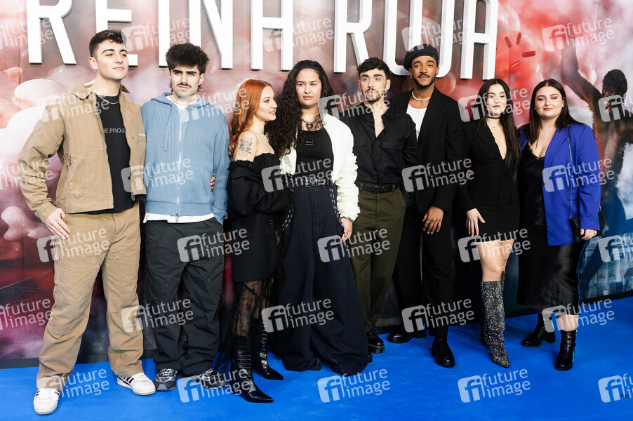 Juanjo Bona, Martin, Ruslana, Salama, Alex Marquez, Omar, Chiara Oliver und Bea bei der Premiere der Amazon Prime Video Serie 'Reina Roja / Red Queen' im Teatro Fernán Gómez. Madrid, 26.02.2024