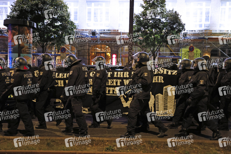 Køpi, Demo, Demonstration, Demonstranten, Protest, Erhalt, Räumung, Räumungsgefahr, Køpiplatz, Wagenburg, Vertreibung, Gentrifizierung, Gentrifikation, Yuppisierung, Strukturwandel, Linksautonome, Defend Köpi-Platz, Räumungstermin, Linkes Wohnprojekt, Linksautonome, Polizei, Polizisten, Polizeieinsatz