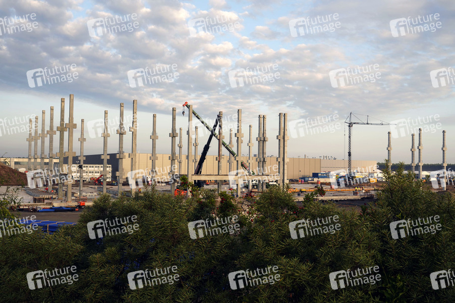 Elektroauto, Elektrofahrzeuge, PKW, Auto, Model Y, Model 3, Großfabrik, Automobilhersteller, Autobauer, Elektromobilität, umweltfreundlich, vorläufige Genehmigung, Batteriefabrik, Großprojekt, Investition, Baugenehmigung, Vorab-Genehmigung, E-Auto-Fabrik, Umwelt, Klimaschutz, Baustelle, Bauen, Baubranche, Bau-Branche, Bauarbeiten, Großbaustelle, Bagger, Kran, Kräne, Baustelle, Batterie-Fabrik