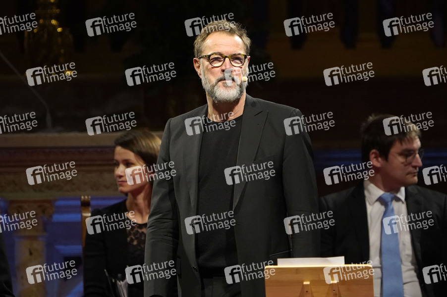 Sebastian Koch mit dem Chor Vocalis Ensemble Dresden und dem Jazztrio Dresden bei der Weihnachtslesung 'Und lauscht hinaus den weißen Wegen' im Rahmen der Lesereihe 'Meisterhaftes aus dem Berliner Dom' im Berliner Dom. Berlin, 26.11.2022