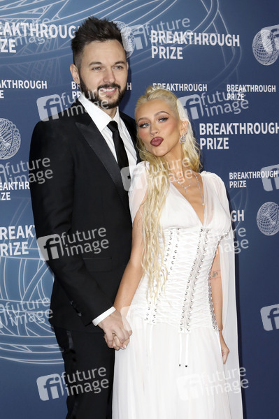 Matthew Rutler mit Partnerin Christina Aguilera bei der 11. Verleihung des Breakthrough Prize für herausragende wissenschaftliche Arbeiten im Barker Hanger. Santa Monica, 05.04.2025