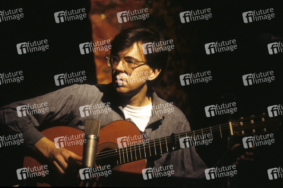 Simon Jeffes vom Penguin Cafe Orchestra beim Soundcheck im Mermaid Theatre. London, 16.12.1984