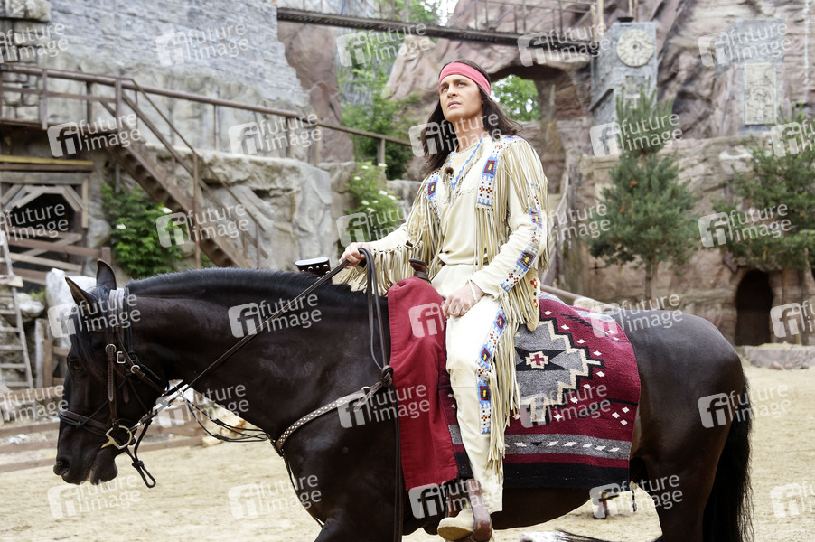 Schauspieler, Sänger, Prominenz, Fototermin, Fotoprobe, Pressetermin, Photocall, Fotocall, Unterhaltung, Entertainment, Kultur, Western, Freilichtbühne, Freilichttheater, Freilufttheater, Kalkbergstadion, Open Air Theater, 68. Karl-May-Spiele 2019, Tier, Pferd