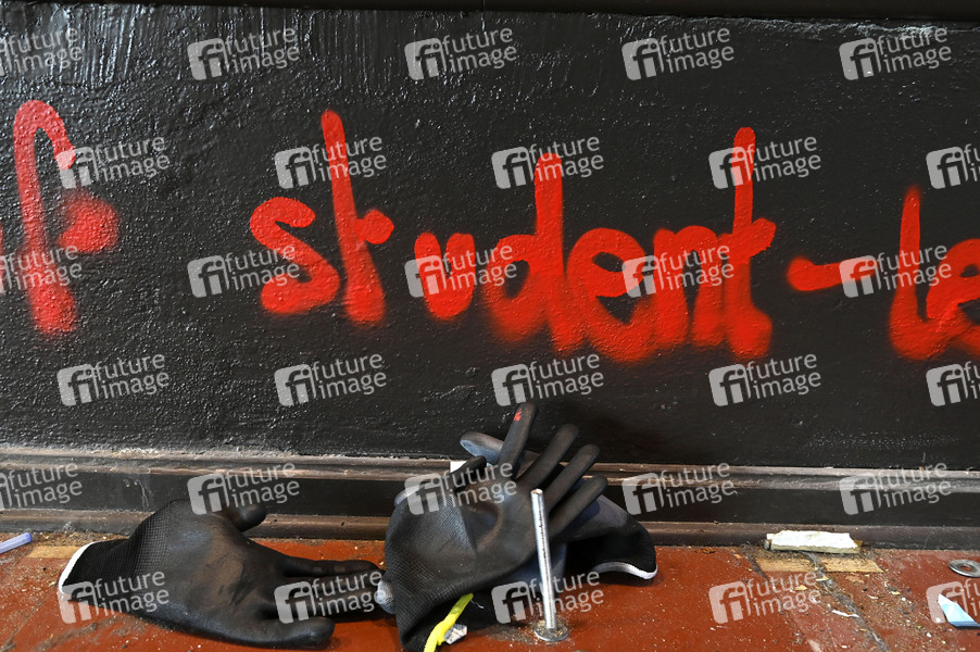 Nach einer Besetzung des Emil-Fischer-Saals der Humboldt-Universität durch propalästinensische Aktivisten die durch die Polizei geräumt wurde, sind offenbar so umfangreiche Schäden entstanden, dass der Raum nicht mehr nutzbar ist. Berlin, 22.04.2025