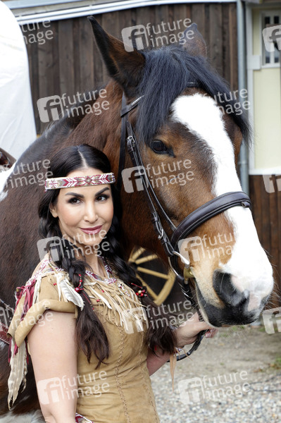 Prominenz, Celebrity, Celebrities, Unterhaltung, Entertainment, Kultur, Western, Freilichtbühne, Kalkbergstadion, Open Air Theater, Kalkberg, 71. Karl-May-Spiele 2024, Tier, Pferd, Schauspielerin, Sila Sahin