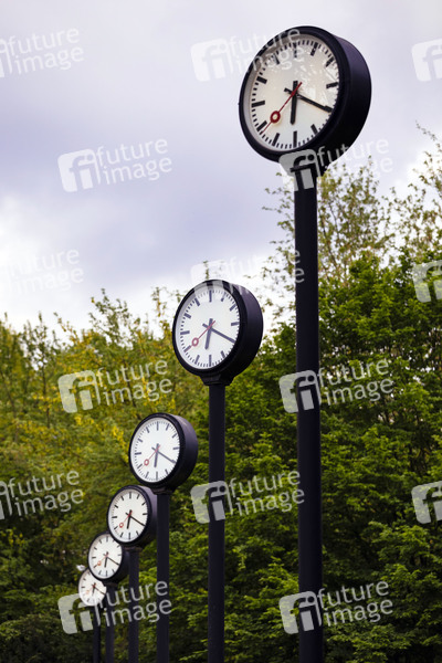 Uhren der Installation 'Zeitfeld' von Klaus Rinke. Düsseldorf, 05.08.2019