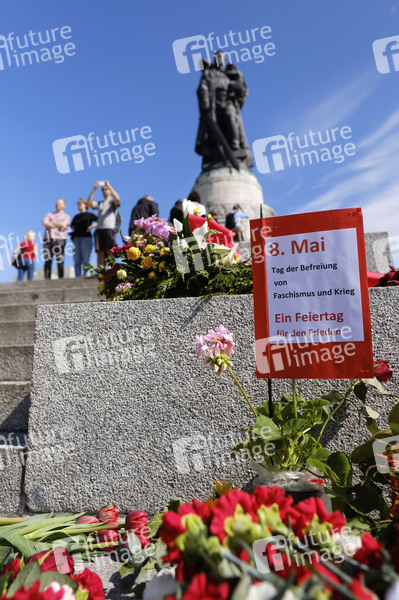 Am 8. Mai, dem Tag der Befreiung vom Nationalsozialismus, versammeln sich viele Menschen am Sowjetischen Ehrenmal im Treptower Park in Berlin. 75 Jahre nach Kriegsende ist dies erstmals ein Feiertag in Berlin. Aufgrund der Corona-Eindämmungsverordnung sind größere Feiern abgesagt worden. Berlin, 08.05.2020
